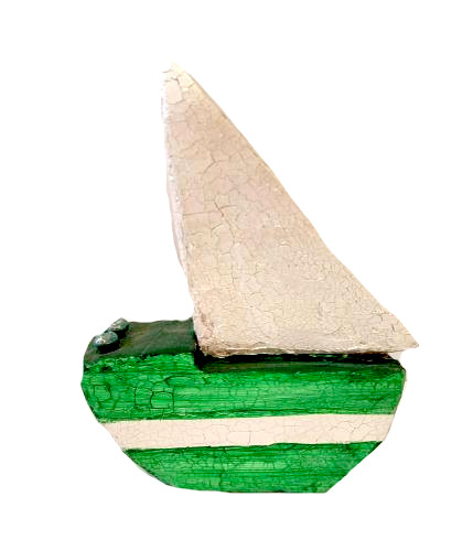 Χειροποίητο κεραμικό καραβάκι με πανί σε πράσινο χρώμα ζωγραφισμένο εξωτερικά με την τεχνική Crackle (κρακελέ) , δημιουργώντας φυσικές ρωγμές και δίνοντας την αίσθηση μιας διακριτικής φθοράς. Ένα μίνιμαλ και μοντέρνο δώρο για κάθε περίσταση και αποδέκτη, που θα κλέψει όλα τα βλέμματα και θα ταιριάξει με όλα τα στιλ διακόσμησης του χώρου που θα την τοποθετήσετε. Ύψος: 14cm