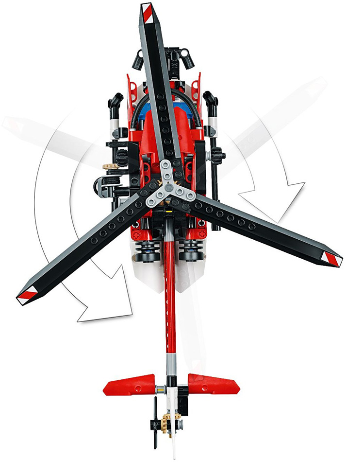 Πραγματοποίησε ηρωικές αποστολές διάσωσης με το LEGO® Technic Ελικόπτερο Διάσωσης. Αυτό το ρεαλιστικό μοντέλο διατίθεται σε απίθανο κόκκινο, λευκό και μαύρο χρώμα με μια ποικιλία ρεαλιστικών χαρακτηριστικών και λειτουργιών. Γύρισε τους έλικες, άνοιξε την πλευρική και την πίσω πόρτα και λειτούργησε το βίντσι για να κατεβάσεις το φορείο διάσωσης... ακριβώς σαν το αληθινό! Ανακατασκεύασε αυτό το σετ για να δημιουργήσεις ένα φουτουριστικό Αεροπλάνο. Ηλικια 8++