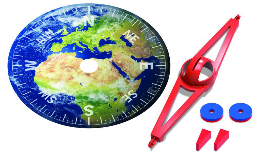 Ανακαλύψτε τη μαγνητική δύναμη της Γης! Εντυπωσιάστε τους φίλους σας με αυτή την τεράστια πυξίδα, που έχει πλάτος 30 εκ. όταν την κατασκευάσετε. Είναι ιδανική για επιστημονικές εργασίες στο σχολείο! ΤΡΟΠΟΣ ΛΕΙΤΟΥΡΓΙΑΣ: Οι δύο μαγνήτες του βραχίονα έχουν δύο σημεία όπου η μαγνητική δύναμη είναι ισχυρότερη. Αυτά τα μέρη ονομάζονται πόλοι. Η Γη ενεργεί σαν μαγνήτης, επίσης. Είναι σαν να υπήρχε ένας γιγάντιος μαγνήτης ράβδων στο κέντρο της Γης, με δύο μαγνητικούς πόλους κοντά στον γεωγραφικό βόρειο και νότιο πόλο της Γης. Οι κόκκινοι πόλοι των μαγνητών έλκονται από τον μαγνητικό πόλο της Γης, ο οποίος βρίσκεται κοντά στο βόρειο γεωγραφικό πόλο. Αυτοί οι κόκκινοι πόλοι ονομάζονται βόρειοι πόλοι επειδή δείχνουν βόρεια. Οι γαλάζιοι πόλοι έλκονται από τον νότιο μαγνητικό πόλο της Γης και έτσι ονομάζονται νότιοι πόλοι. Ο βραχίονας της πυξίδας πάντα περιστρέφεται έτσι ώστε να δείχνει στους πόλους. Οι περισσότερες πυξίδες λειτουργούν όπως η Μαγνητική Πυξίδα Γίγας. Η βελόνα της πυξίδας μαγνητίζεται και στα δύο άκρα και υποδεικνύει την κατεύθυνση όταν προσελκυστεί από τη μαγνητική δύναμη της Γης. Περιέχονται οδηγίες στα Ελληνικά. Διαστάσεις: 17 x 22 x 6εκ. Ηλικία 5++
