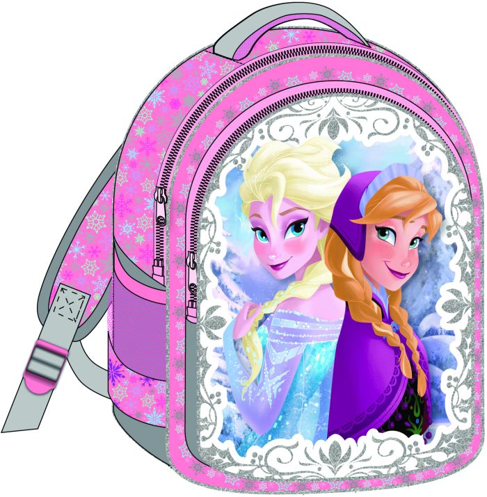 Σακίδιο νηπιαγωγείου - mini , ανθεκτικό με μία κεντρική θέση που κλείνει με φερμουάρ και μία μικρότερη μπροστά. Είναι κατασκευασμένο από ανθεκτικό γυαλιστερό ύφασμα με όμορφα τυπωμένα σχέδια που λαμπυρίζουν επάνω του. Η μπροστινή θήκη του λεπτομέρειες με glitter και ανάγλυφα σχέδια και λουλούδια γύρω από τις ηρωίδες των κοριτσιών. Έχει ανατομική πλάτη και εργονομικούς, αεριζόμενους και ρυθμιζόμενους ιμάντες. Στο πίσω μέρος υπάρχει ετικέτα για τα στοιχεία του μαθητή. Επίσης διαθέτει και λαβή για το κράτημά της με το ένα χέρι. Για περισσότερο χώρο διαθέτει στα πλαϊνά της δύο θήκες από δίχτυ για παγούρι ή ομπρέλα. Διαστάσεις προϊόντος : 34 x 32 x 15 cm