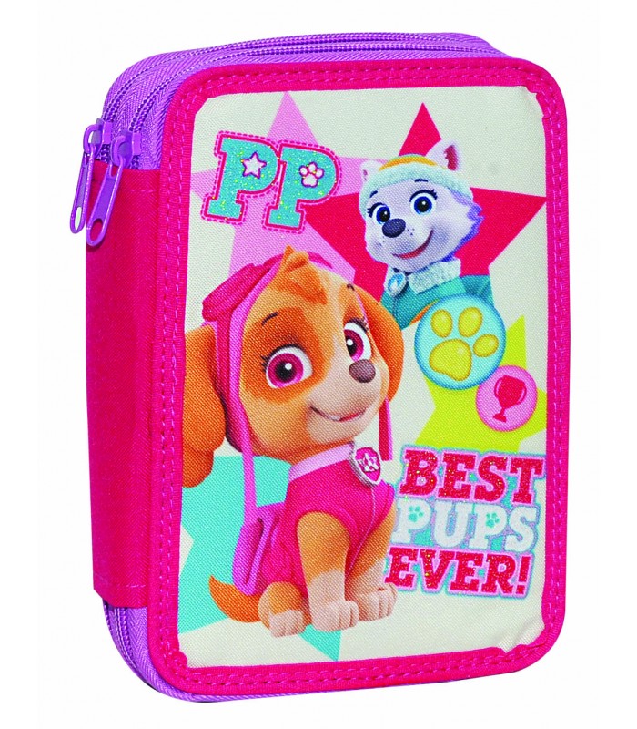 Διαθέτει δύο θήκες που κλείνουν με φερμουάρ και περιέχει: 10 ξυλομπογιές 10 μαρκαδόρους 2 μολύβια χάρακα γόμα ξύστρα μπλοκ σημειώσεων και συμπλήρωση εβδομαδιαίου προγράμματος