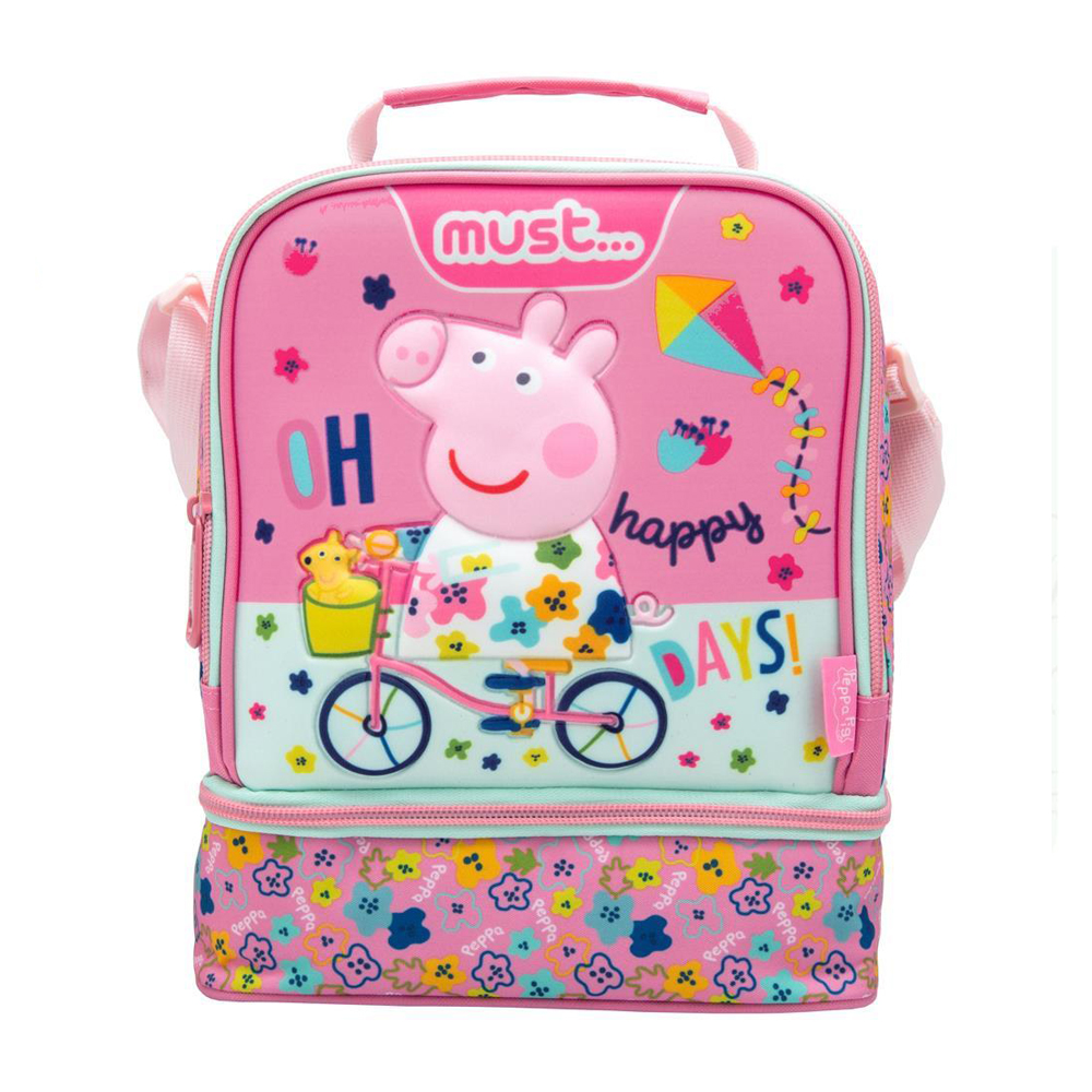 Τσαντάκι φαγητού Peppa pig happy days Must ισοθερμικό με 2 θήκες ιδανικό για την καλύτερη αποθήκευση και ασφαλέστερη μεταφορά του σπιτικού φαγητού στο σχολείο, τη βόλτα και τις εκδρομές! Ένα απαραίτητο παιδικό τσαντάκι φαγητού με την ποιότητα Must που θα ενθουσιάσει σε κάθε δραστηριότητα. Με διαστάσεις 24Χ12Χ20cm και χωρητικότητα 7lt. Διαθέτει 2 ευρύχωρες θήκες, 1 μεγάλη κεντρική θήκη και 1 μικρότερου μεγέθους στο κάτω μέρος. Με εσωτερική ισοθερμική επένδυση για να διατηρεί τη φρεσκάδα, τη νοστιμιά και τη σταθερή θερμοκρασία όλων των γευμάτων κάθε στιγμή! Ενισχυμένη λαβή, ρυθμιζόμενος ιμάντας ώμου μεταφοράς και λουράκι τρόλλεϋ για την ασφαλέστερη και πιο ξεκούραστη μεταφορά του φαγητού. Με ελαστικό ιμάντα για στήριξη παγουριού και ετικέτα στοιχείων για να μην το χάνετε ή το μπερδεύετε.