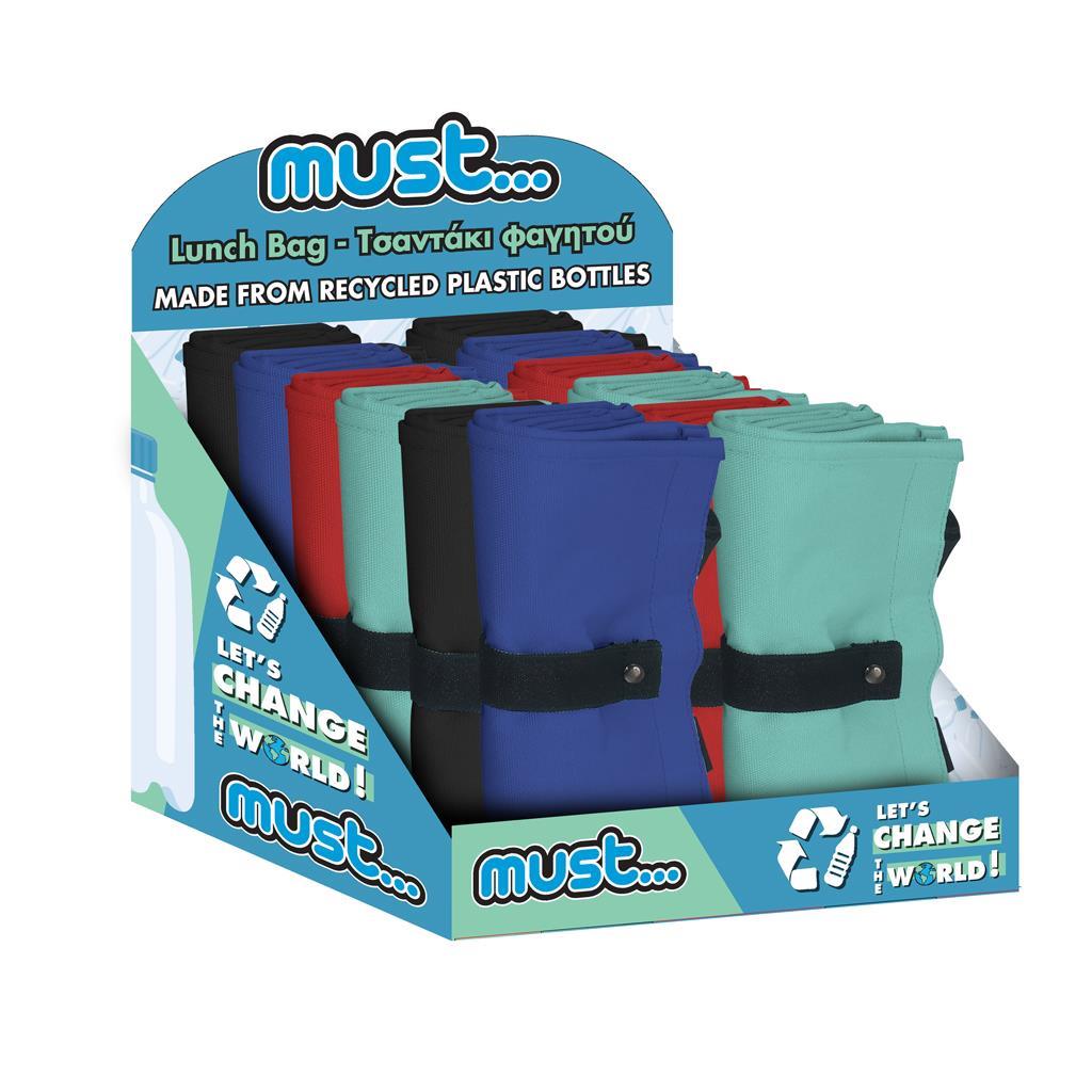 Ισοθερμικό τσαντάκι φαγητού κατασκευασμένο από ανακυκλωμένα πλαστικά μπουκάλια σε 4 χρώματα για να διαλέξετε. Ιδανικά για το σχολείο, την εκδρομή ή το γραφείο. Με διαστάσεις 21x16x33εκ.