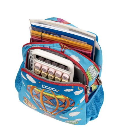 Τεχνικές Προδιαγραφές 2 κεντρικές θήκες. Πλαϊνές θήκες με λάστιχο για το παγούρι ή μικροαντικείμενα. Χερούλι μεταφοράς. Ιμάντας στήθους για μεγαλύτερη σταθερότητα του σακιδίου, άνεση και σωστή στάση της σπονδυλικής στήλης. Πλάτη κατασκευασμένη από επιλεγμένα και εξειδικευμένα υλικά νέας τεχνολογίας για καλύτερη στήριξη, επιτρέποντας την κυκλοφορία του αέρα και μειώνοντας έτσι την εφίδρωση και την ανάπτυξη βακτηριδίων. Ανατομικοί, αεριζόμενοι και εργονομικά σχεδιασμένοι ιμάντες πλάτης για καλή στήριξη του σακιδίου και προστασία των ώμων και της πλάτης. Όλες οι θήκες διαθέτουν ανθεκτικά επώνυμα φερμουάρ SBS υψηλών προδιαγραφών. *(Φερμουάρ με αντοχή και λειτουργικότητα για χιλιάδες χρήσεις). Χωρητικότητα: 6 lt. Υ. 29cm. | Μ. 22cm. | Π. 10cm. Βάρος: 310gr