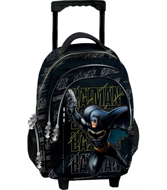 Πολυθεσιακό trolley με διπλες ρόδες από καουτσούκ ΧΑΡΑΚΤΗΡΙΣΤΙΚΑ Ρυθμιζόμενοι ανατομικοί ιμάντες Βέλκρο ασφάλισης για τα λουριά του ιμάντα για να προστατεύονται από φθορές κατά τη χρήση ως τρόλλευ 3 ευρύχωρες θήκες 2 πλαινές θήκες. 1 με φερμουάρ και 1 με σούρωμα κατάλληλη για παγούρι Ανθεκτική λαβή Ανάγλυφο patch του ήρωα απο υλικό eco-leather Ύλικό: Polyester 600D Σχηματισμένη μεταλική λαβή φερμουάρ στο σήμα του ήρωα Ρόδες από καουτσούκ Διαστάσεις: 30x14x44cm
