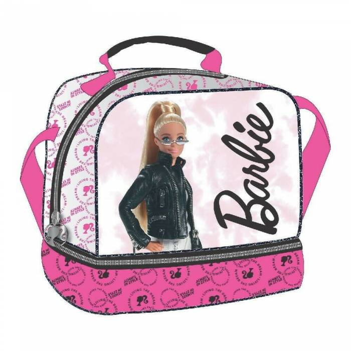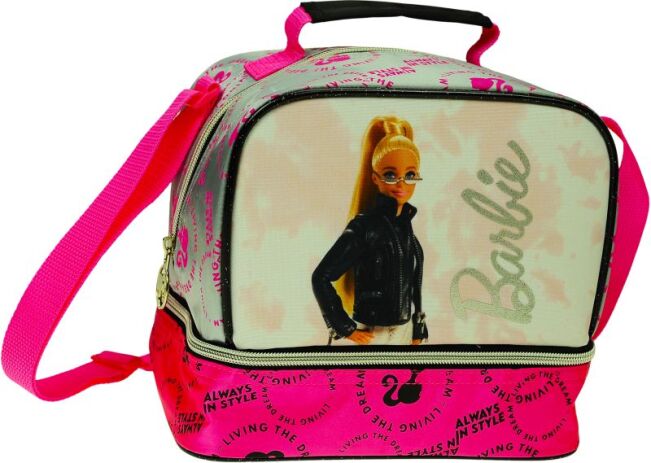 Gim Barbie τσαντάκι φαγητού trend Flash 349-71220 Δύο ξεχωριστές θήκες, μια μεγάλη κεντρική και μια μικρότερη στο κάτω μέρος -Ενισχυμένος ιμάντας ώμου – Ισοθερμική αδιάβροχη επένδυση για τη διατήρηση θερμοκρασίας των φαγητών Διαστάσεις: 20 X 21 X 15εκ Χωρητικότητα: 4,5lt Υλικό: woven fabric