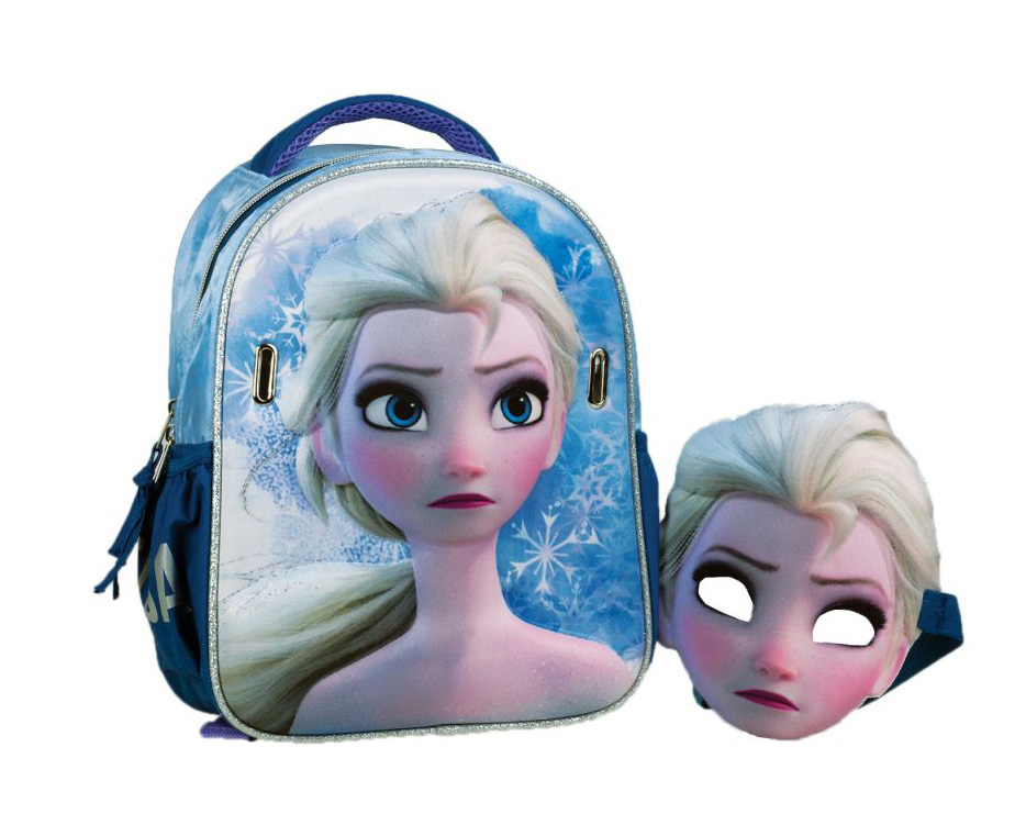 ΤΣΑΝΤΑ ΝΗΠΙΑΓΩΓΕΙΟΥ ELSA FROZEN 2 Χαρακτηριστικά: -Ανατομική και ενισχυμένη πλάτη. -Τσάντα με δύο κεντρικές θέσεις και δύο πλαϊνές για παγούρι. -Ενισχυμένο χερούλι μεταφοράς. -Εργονομικοί ρυθμιζόμενοι ιμάντες. -Τρισδιάστατη απεικόνιση του ήρωα και αποσπώμενη μάσκα -Υλικό: Wooven Fabric. Διαστάσεις προϊόντος : 24 × 31 × 12 cm