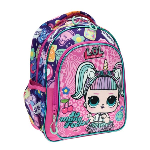 Χαρακτηριστικά: Ανατομική και ενισχυμένη πλάτη. Τσάντα με μία κεντρική θέση και μία επιπλέον μπροστινή και δύο πλαϊνές για παγούρι. Ενισχυμένο χερούλι μεταφοράς. Εργονομικοί ρυθμιζόμενοι ιμάντες. Διαστάσεις: 31x25x15cm. Υλικό: Wooven Fabric.