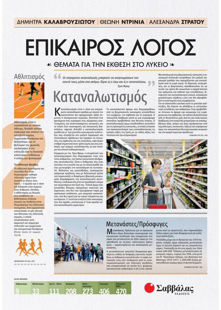 Ο «Επίκαιρος Λόγος» πραγματεύεται όλα τα θέματα που περιέχονται στα σχολικά βιβλία της Έκφρασης-Έκθεσης των τριών τάξεων του Λυκείου.