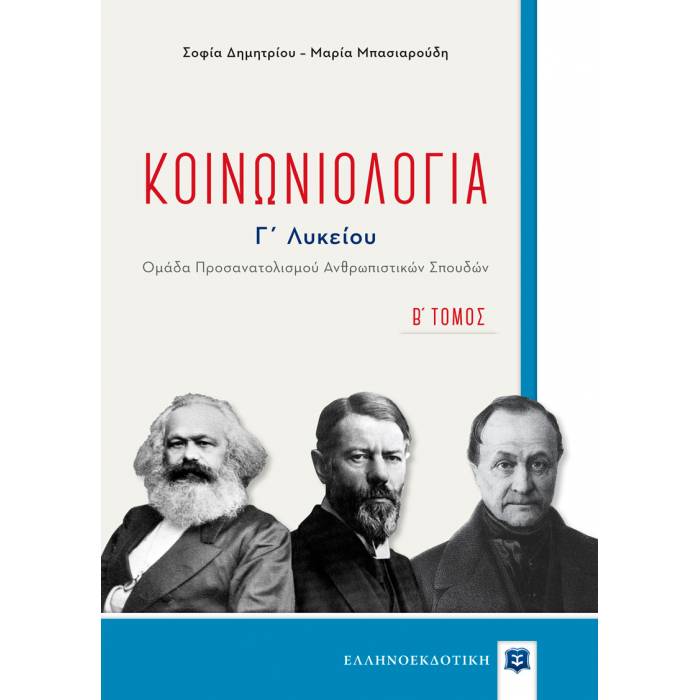 Το εκπαιδευτικό βιβλίο "Κοινωνιολογία Γ' Λυκείου - Ομάδα Προσανατολισμού Ανθρωπιστικών Σπουδών, Β' τόμος," περιλαμβάνει τα κεφάλαια 5ο, 6ο, 7ο, 9ο και 10ο και οργανώνεται σε δυο μέρη.