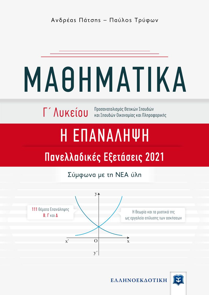 ο εκπαιδευτικό βιβλίο Μαθηματικά Γ΄ Λυκείου - Η ΕΠΑΝΑΛΗΨΗ απευθύνεται στους υποψήφιους /-ες των Ομάδων Προσανατολισμού Θετικών Σπουδών και Σπουδών Οικονομίας και Πληροφορικής.