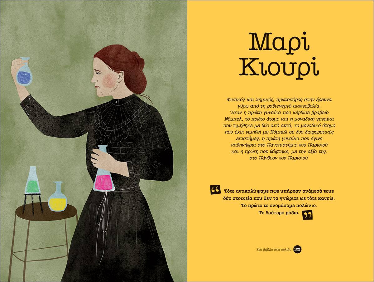 Ποιες είναι οι γυναίκες που άλλαξαν τον κόσμο και που συχνά η Ιστορία ξεχνάει να μας γνωρίσει; Πώς έζησαν και τι δημιούργησαν οι καλλιτέχνιδες, οι πολιτικοί, οι συγγραφείς, οι επιστήμονες, οι αθλήτριες και οι ακτιβίστριες που άνοιξαν το δρόμο για όλες όσες ακολούθησαν; Πώς θα μας συστήνονταν οι ίδιες, αν μπορούσαν να μας διηγηθούν, σε πρώτο πρόσωπο, την πραγματική τους ιστορία; Και, τελικά, τι έμπνευση μπορούμε να πάρουμε από εκείνες ώστε να μπορέσουμε κι εμείς με τη σειρά μας να δημιουργήσουμε έναν πιο υγιή, δίκαιο και προοδευτικό κόσμο; Γύρισε το βιβλίο από την άλλη (ή και όχι), βρες μία βολική θέση και έλα να γνωρίσουμε μαζί 30 σπουδαίες γυναίκες που άλλαξαν τον κόσμο. Θα τολμήσεις να γίνεις η καλύτερη εκδοχή του εαυτού σου; (Από την παρουσίαση στο οπισθόφυλλο του βιβλίου)
