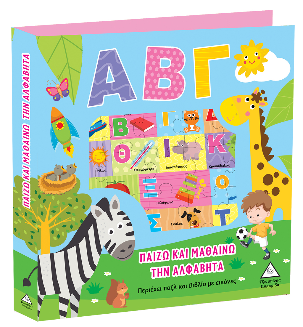 Παίζουμε και μαθαίνουμε την αλφαβήτα μέσα από ένα βιβλίο με υπέροχες εικόνες κι ένα διασκεδαστικό και πολύχρωμο παζλ.