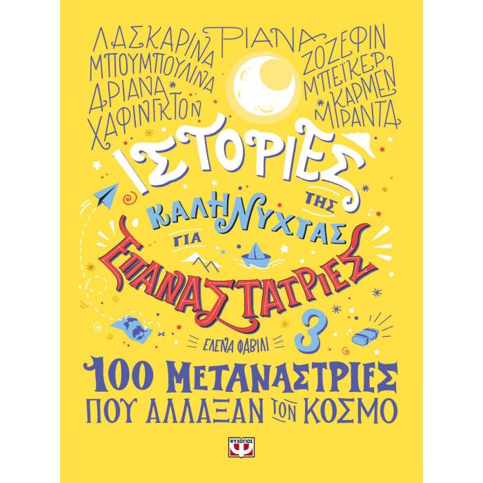 Ο τρίτος τόμος της ευπώλητης, σύμφωνα με τις λίστες των New York Times, σειράς για παιδιά. Το Ιστορίες της καληνύχτας για επαναστάτριες: 100 μετανάστριες που άλλαξαν τον κόσμο περιλαμβάνει εκατό βιογραφίες γυναικών που άφησαν την πατρίδα τους για διάφορους λόγους: κάποιες για να βρουν νέες ευκαιρίες και κάποιες άλλες από ανάγκη. Οι αναγνώστες θα μάθουν για τη Μαντλίν Ολμπράιτ, την Άσμα Καν, την Κάρμεν Μιράντα, τη Ριάνα και πολλές άλλες. Από σεφ και χειρουργούς μέχρι μουσικούς και πολιτικούς, αλλά και πρωταθλήτριες στο τζούντο και το σκάκι, αυτές οι εκπληκτικές γυναίκες θα εμπνεύσουν τα κορίτσια σε όλο τον κόσμο να ακολουθούν τα όνειρά τους, όπου κι αν οδηγούν. (Από την παρουσίαση στο οπισθόφυλλο του βιβλίου)
