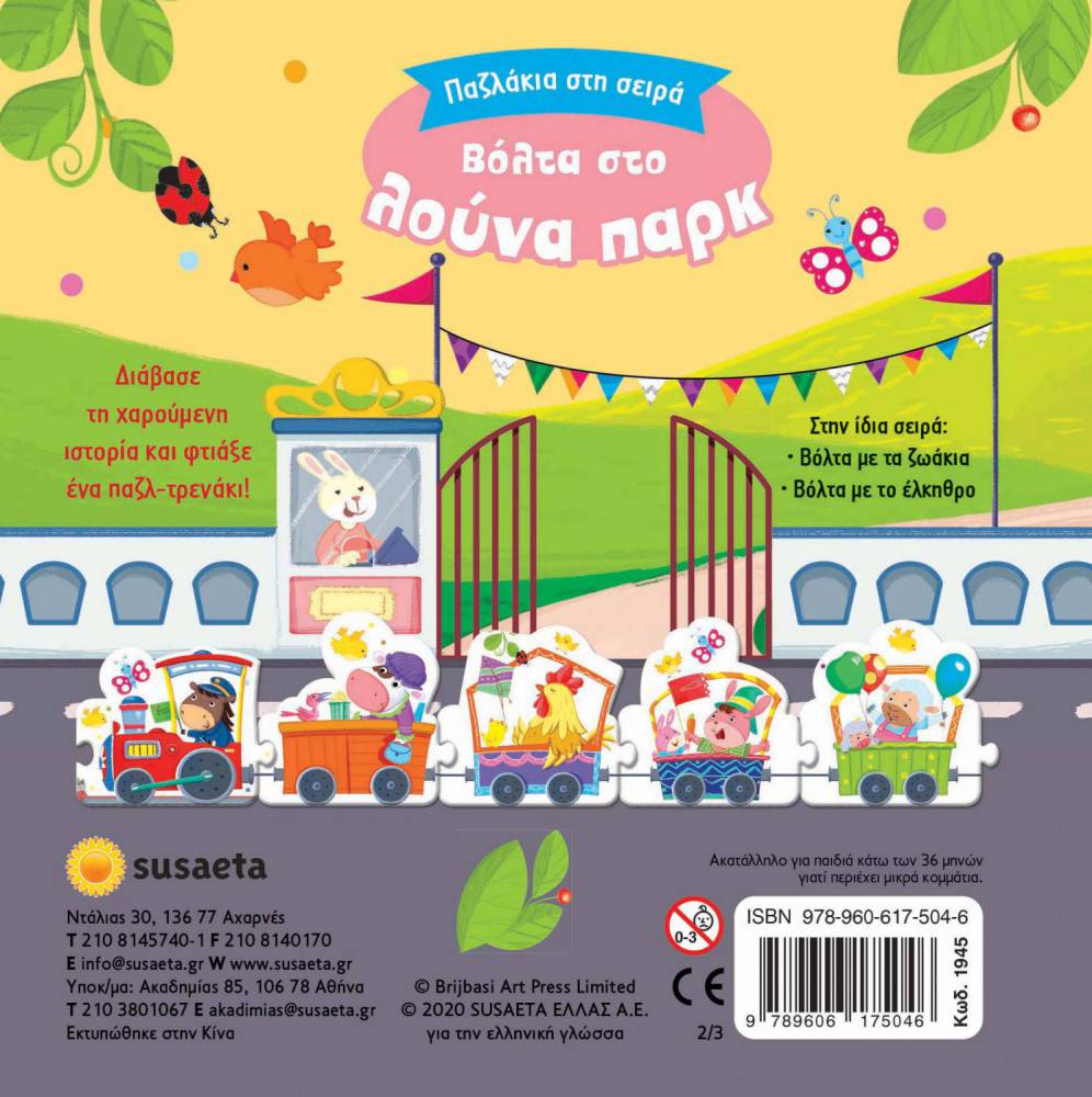 Εξώφυλλο: Χαρτονέ ISBN: 978-960-617-504-6 Barcode: 9789606175046 Σειρά: Παζλάκια στη σειρά Διαστάσεις: 16 x 16 εκ. Σελίδες: 10 Ηλικία: 3+ ετών